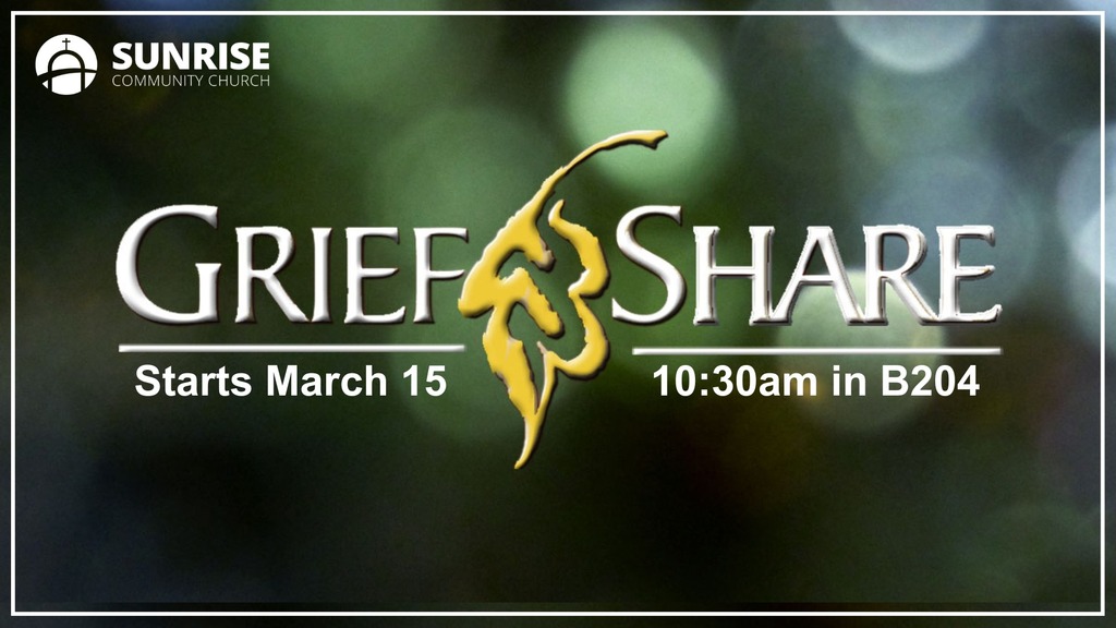 Grief Share - 13-week support group for those who have lost a spouse, loved one or friend. DVD, discussion and daily Workbook exercises help you to learn how to grieve the healthy way, going from mourning to joy. Workbooks cost $20. The spring season is from March 15 - July 5, 2026.