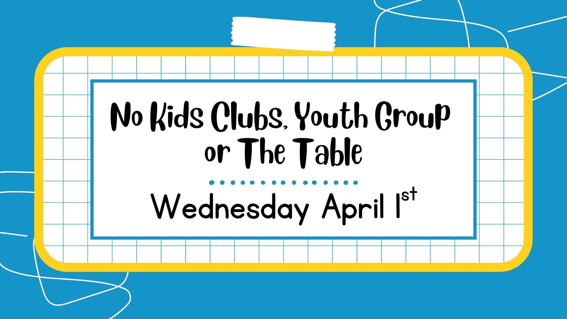 No Kids Clubs or Youth Group – Wed, April 1