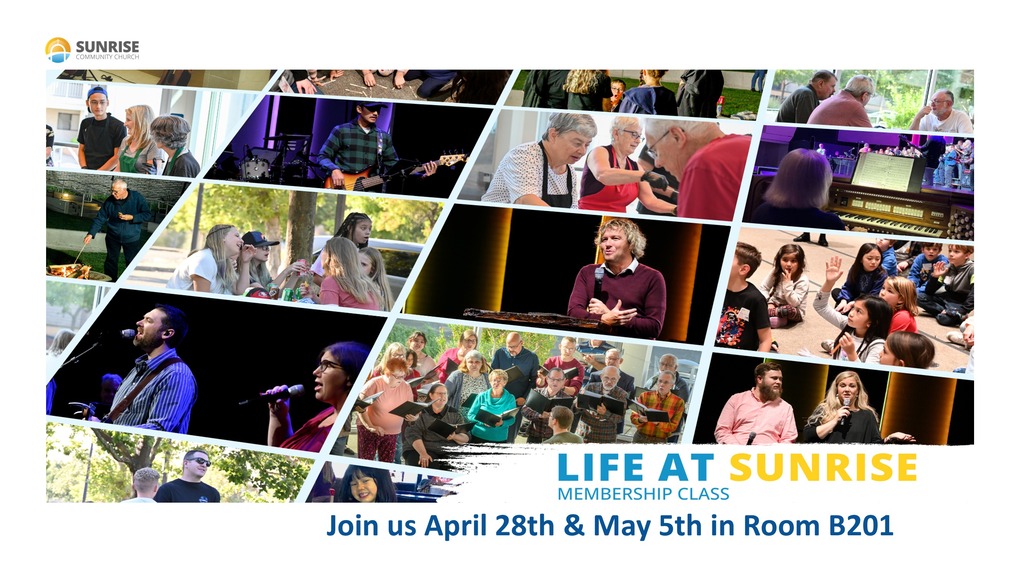 A two week introduction to the Sunrise family - Who we are, what we are about, and how you can be part of it. You will learn about Sunrise's beliefs, purpose, strategy, structure and future. At the end of the class, you will be given an opportunity to deepen your commitment to Sunrise.