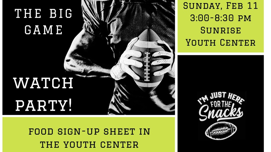 MS & HS Superbowl PartyFeb 11, 2024 at 3:00 PMOrganizer: Melisa ConwellLocation:High School Room (80/120)8321 Greenback LnFair Oaks, CA 95628Get Directions