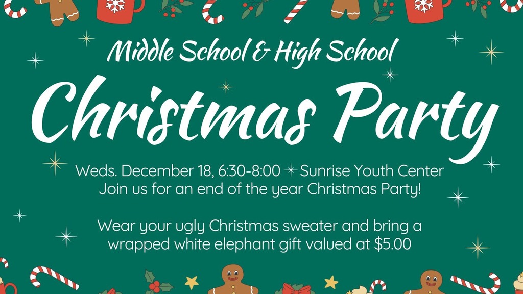 MS & HS Christmas PartyDec 18, 2024 at 6:30pmOrganizer: Melisa ConwellLocation:High School Room (80/120)8321 Greenback LnFair Oaks, CA 95628Get Directions