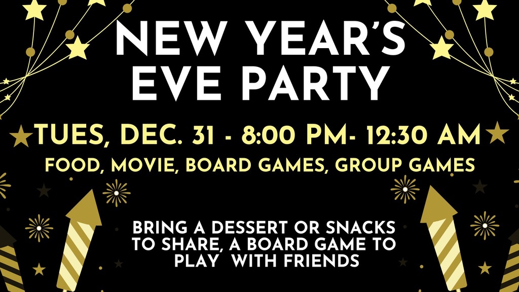 Youth New Year's PartyDec 31, 2024 at 8:00pmOrganizer: Melisa ConwellLocation:High School Room (80/120)8321 Greenback LnFair Oaks, CA 95628Get Directions