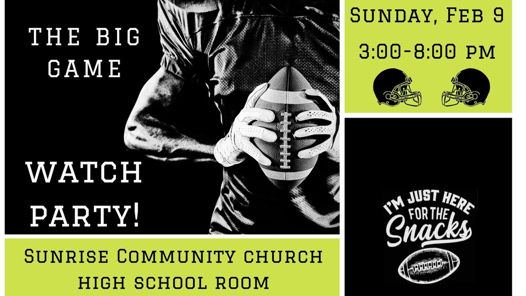 Middle School and High School students! Come join us to watch "The big football game" in the High School room. Bring a snack to share, drinks will be provided. Come cheer on your favorite team and have some fun!