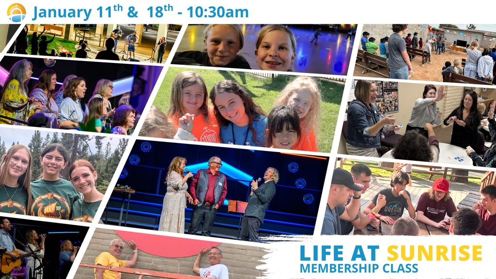 Life at Sunrise - Part 1Jan 11, 2026 at 10:30amOrganizer: Melanie EastmanThis class will go into the history of SCC, and the core beliefs of our church. You will meet all of the pastors.REGISTER TODAYLocation:B-204 Classroom - (50-80)8321 Greenback LnFair Oaks, CA 95628Get Directions
