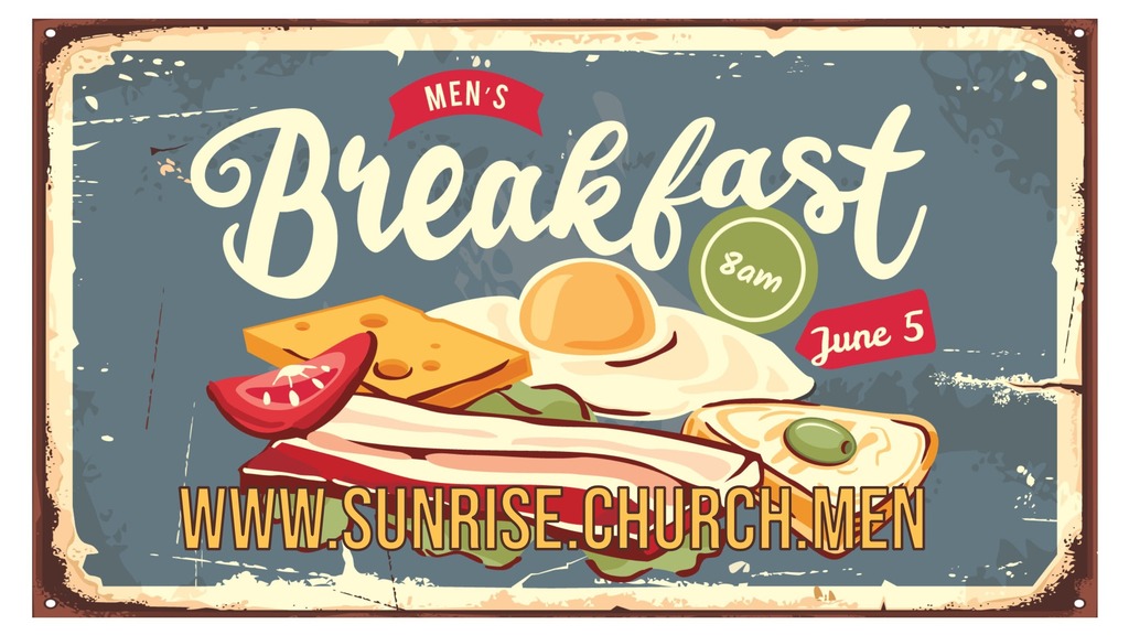 Join Pastor Luke and Pastor Cliff for breakfast Saturday, June 5th from 8am - 9:30am in the Worship Center Lobby. Breakfast will be $5 per person. Our guest speaker this month will be Steve Heller, the Director of Men in HD. To reserve a meal, please click here.