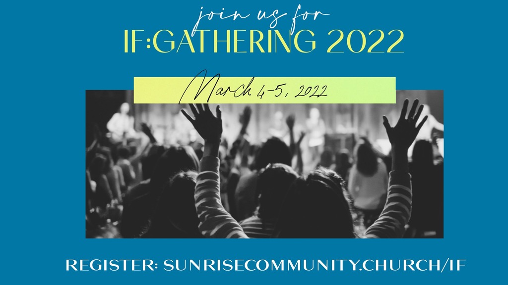 We are excited to announce IF:Gathering 2022 here at Sunrise! At IF:2022, we’re going to talk about how to live in this world right now and how to navigate a life that goes against culture. How do we build community in the middle of that? How do we tell people about Jesus? There’s a reason we’re still alive. There’s a reason we’re still here. Our lives matter in this time. And we’re not going to waste it. Register now. sunrisecommunity.church/if