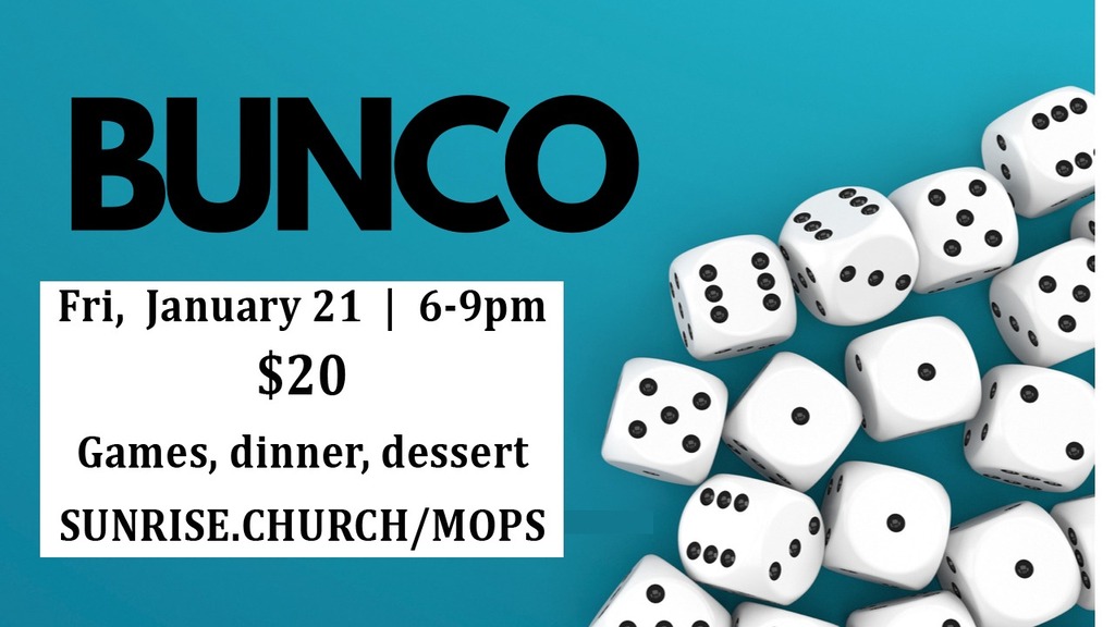 Come have some fun playing Bunco with us while enjoying dinner, dessert, and raffle prizes! All proceeds benefit the MOPS & MOMSnext ministry.