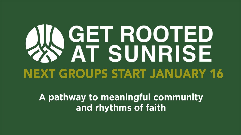 Rooted is the name of our discipleship pathway at Sunrise Community, where you will join a small group of people with whom you can learn and grow in your faith. Your Rooted journey begins at a Launch Event in either the Winter, Spring or Fall. Our next Launch event is Sunday, January 16. Registration is open now!