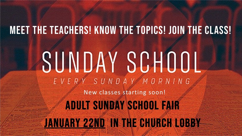 New classes are starting soon! Come and meet the teachers, get to know the topics of classes available, and sign up to join a group/class. Sunday School Classes are a great way to grow your relationship with God and get connected with others in the process! We look forward to seeing you there!