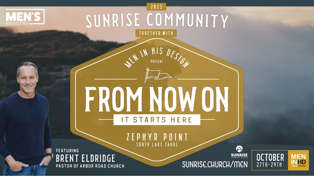 Sunrise Men it is that time of year to start registering for the annual Men in HD Conference at Zephyr Point in South Lake Tahoe. This year’s speaker will be Brent Eldridge, Lead Pastor of Arbor Road Church in Long Beach. For more information, stop by the Men’s Table in the lobby or contact Kim Harvey in the office at 916-726-4642.